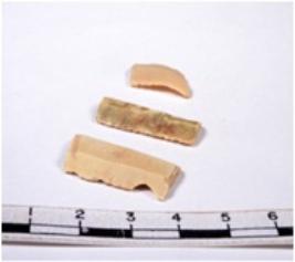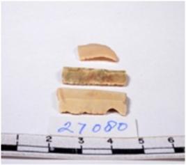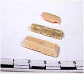 | Description / विवरण | A fragment of a rectangular shaped chert blade showing dorsal sides with sharp cutting edges having smooth surface and triangular section. |