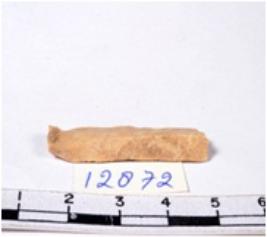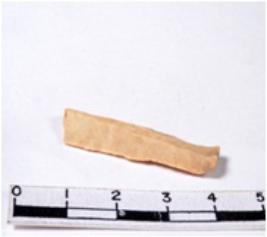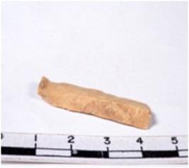 | Description / विवरण | A fragment of a rectangular shaped chert blade showing dorsal sides with sharp cutting edges having smooth surface and triangular section. |