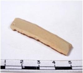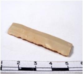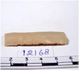 | Description / विवरण | A fragment of a rectangular shaped chert blade showing dorsal sides with sharp edges having smooth surface and triangular section. |