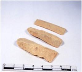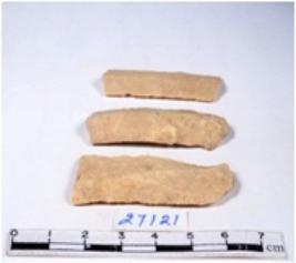 | Description / विवरण | A fragment of a rectangular shaped chert blade showing dorsal sides with sharp edges having smooth surface and triangular section. |