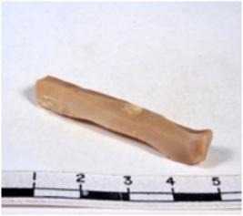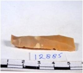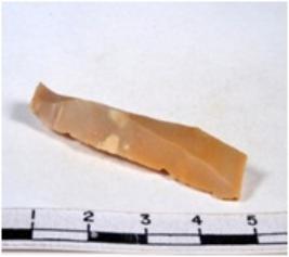 | Description / विवरण | A fragment of a rectangular shaped chert blade showing dorsal sides with sharp edges having smooth surface and triangular section. |