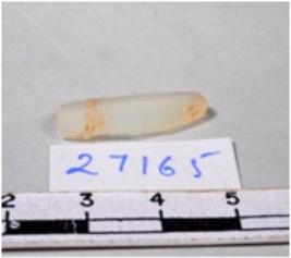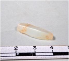 | Description / विवरण | A fragment of a rectangular shaped chalcedony blade showing dorsal sides with sharp edges having smooth surface and triangular section. |