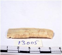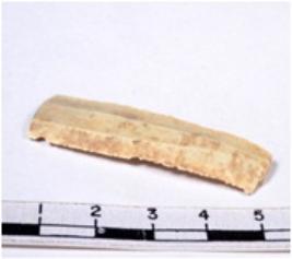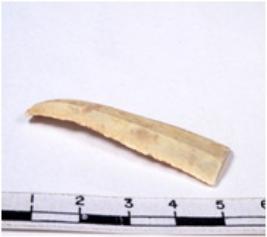 | Description / विवरण | A fragment of a rectangular shaped chert blade showing dorsal sides with sharp cutting edges having smooth surface and uneven section. |