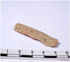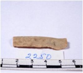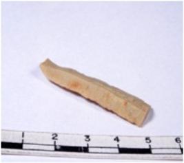 | Description / विवरण | A fragment of a rectangular shaped chert blade showing dorsal sides with sharp edges having smooth surface and triangular section. |
