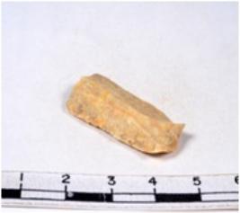 | Description / विवरण | A fragment of a rectangular shaped chert blade showing parallel sides with sharp edges having smooth surface and uneven section. |