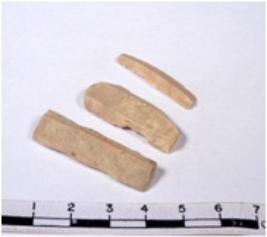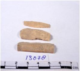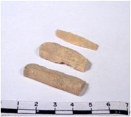 | Description / विवरण | A fragment of a rectangular shaped chert blade showing dorsal sides with sharp cutting edges having smooth surface and triangular section. |