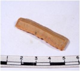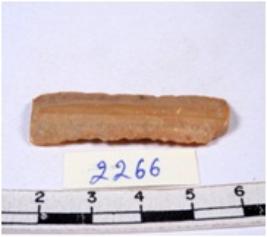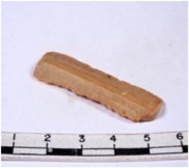 | Description / विवरण | A fragment of a rectangular shaped chert blade showing dorsal sides with sharp edges having smooth surface and triangular section. |