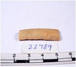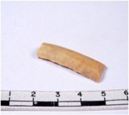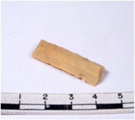 | Description / विवरण | A fragment of a rectangular shaped chert blade showing dorsal sides with sharp cutting edges having smooth surface and triangular section. |
