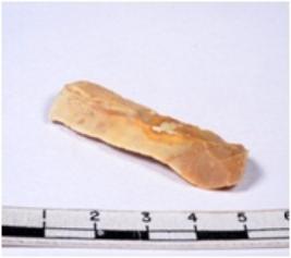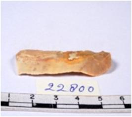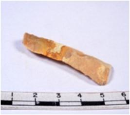 | Description / विवरण | A fragment of a rectangular shaped chert blade showing dorsal sides with sharp cutting edges having smooth surface and triangular section. |
