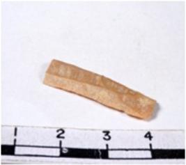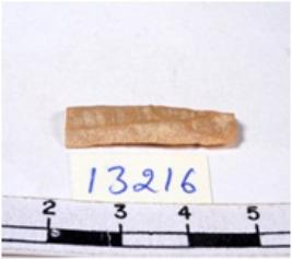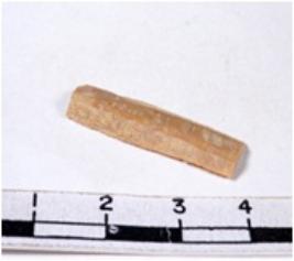 | Description / विवरण | A fragment of a rectangular shaped chert blade showing flat sides with sharp cutting edges having smooth surface and uneven section. |