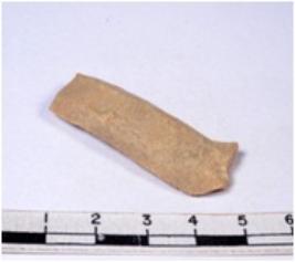 | Description / विवरण | A fragment of a rectangular shaped chert blade showing parallel sides with sharp edges having smooth surface and uneven section. |