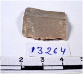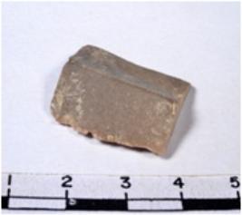 | Description / विवरण | A fragment of a rectangular shaped chert blade showing dorsal sides with sharp cutting edges having smooth surface and triangular section. |