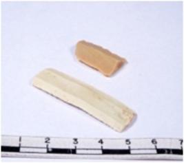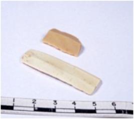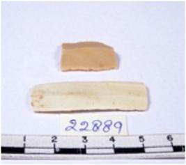 | Description / विवरण | A fragment of a rectangular shaped chert blade showing dorsal sides with sharp edges having smooth surface and triangular section. |