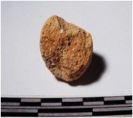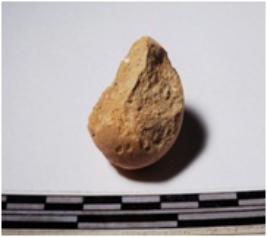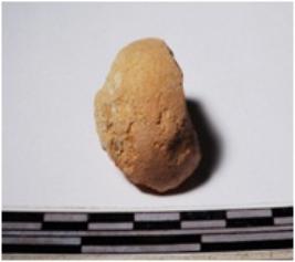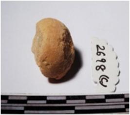 | Description / विवरण | A fragment of a terracotta round shaped sling ball, circular in section of rough surface. |