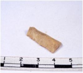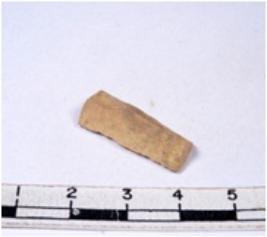 | Description / विवरण | A fragment of a rectangular shaped chert blade showing dorsal sides with sharp cutting edges having smooth surface and triangular section. |