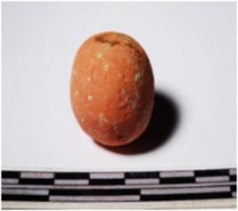 | Description / विवरण | A terracotta round shaped sling ball, circular in section of smooth surface. |