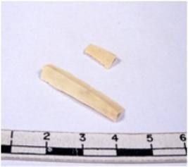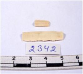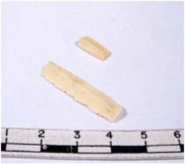 | Description / विवरण | A fragment of a rectangular shaped chert blade showing dorsal sides with sharp edges having smooth surface and triangular section. |