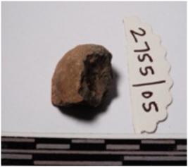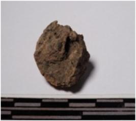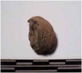 | Description / विवरण | A fragment of a terracotta sling ball round in shape of rough surface. |