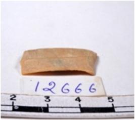 | Description / विवरण | A fragment of a rectangular shaped chert blade showing dorsal sides with sharp edges having smooth surface and triangular section. |