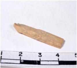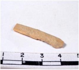 | Description / विवरण | A fragment of a rectangular shaped chert blade showing dorsal sides with sharp cutting edges having smooth surface and triangular section. |