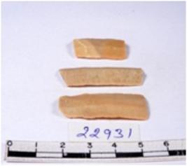 | Description / विवरण | A fragment of a rectangular shaped chert blade showing dorsal sides with sharp edges having smooth surface and triangular section. |