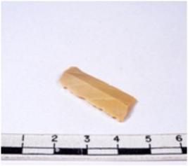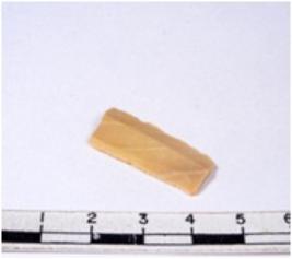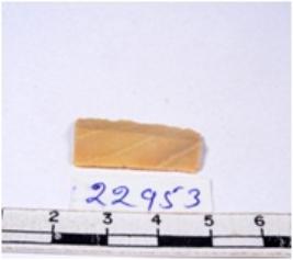 | Description / विवरण | A fragment of a rectangular shaped chert blade showing dorsal sides with sharp edges having smooth surface and triangular section. |