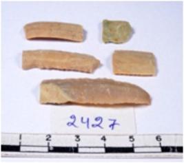 | Description / विवरण | A fragment of a rectangular shaped chert blade showing dorsal sides with sharp edges having smooth surface and triangular section. |