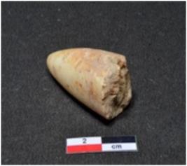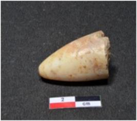 | Description / विवरण | A small sized shell point conical in shaped, panted on one end partly broken, having smooth surface. |