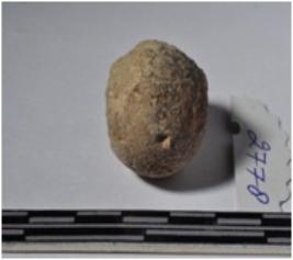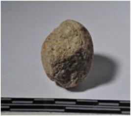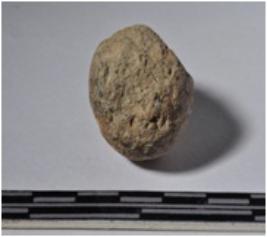 | Description / विवरण | A fragment of a terracotta sling ball round in shape of smooth surface. |