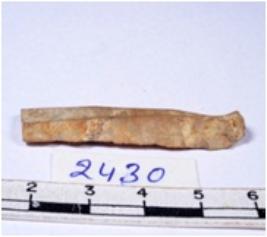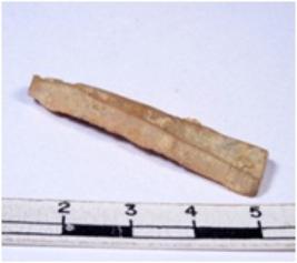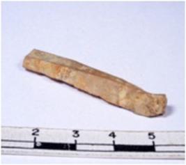 | Description / विवरण | A fragment of a rectangular shaped chert blade showing dorsal sides with sharp cutting edges having smooth surface and triangular section. |