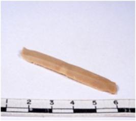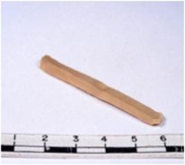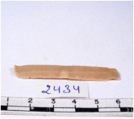 | Description / विवरण | A fragment of a rectangular shaped chert blade showing dorsal sides with sharp cutting edges having smooth surface and triangular section. |