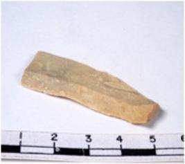 | Description / विवरण | A fragment of a rectangular shaped chert blade with sharp cutting edges having smooth surface and triangular section. |