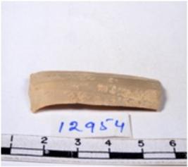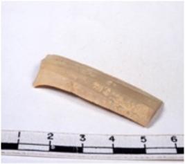 | Description / विवरण | A fragment of a rectangular shaped chert blade showing dorsal sides with shapr cutting edges having smooth surface and triangular section. |