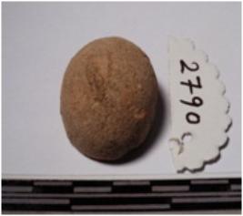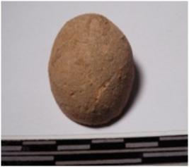| Description / विवरण | A fragment of a terracotta round shaped sling ball, circular in section of smooth surface. |