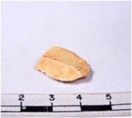 | Description / विवरण | A fragment of a rectangular shaped chert blade showing parallel sides with sharp edges having smooth surface and triangular section. |