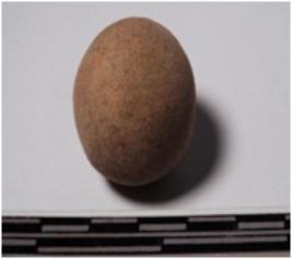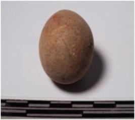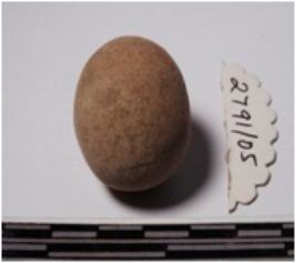 | Description / विवरण | A terracotta sling ball round in shape of smooth surface. |