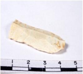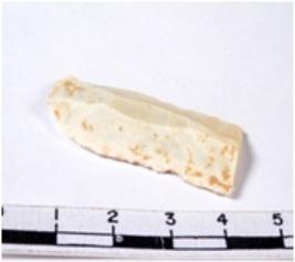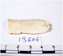 | Description / विवरण | A fragment of a rectangular shaped chert blade showing dorsal sides with sharp edges having smooth surface and triangular section. |