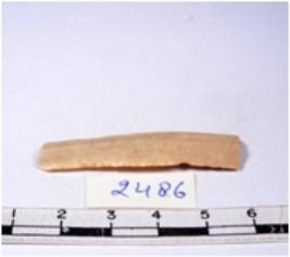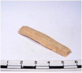 | Description / विवरण | A fragment of a rectangular shaped chert blade showing dorsal sides with sharp edges having smooth surface and triangular section. |