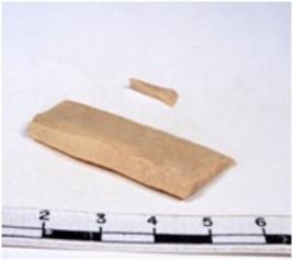 | Description / विवरण | A fragment of a rectangular shaped chert blade showing parallel sides with sharp edges having smooth surface and triangular section. |