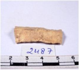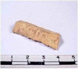 | Description / विवरण | A fragment of a rectangular shaped chert blade showing dorsal sides with sharp edges having smooth surface and triangular section. |