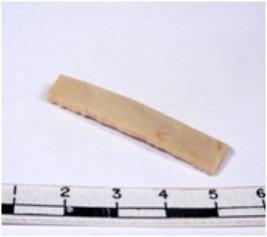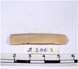 | Description / विवरण | A fragment of a rectangular shaped chert blade showing dorsal sides with sharp edges having smooth surface and triangular section. |