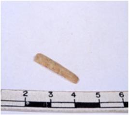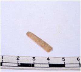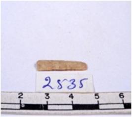 | Description / विवरण | A fragment of a rectangular shaped chert blade showing dorsal sides with sharp edges having smooth surface and triangular section. |