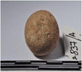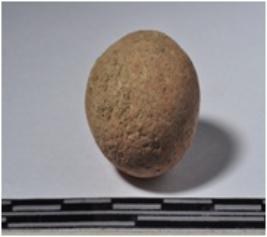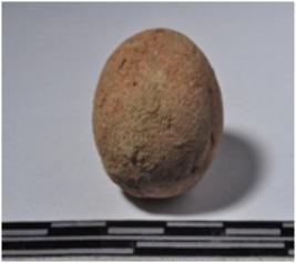 | Description / विवरण | A terracotta sling ball, round shaped and smooth surface. |