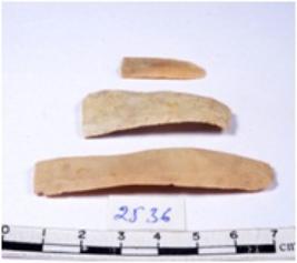 | Description / विवरण | A fragment of a rectangular shaped chert blade showing dorsal sides with sharp edges having smooth surface and triangular section. |