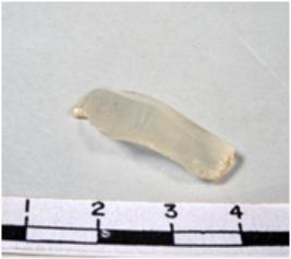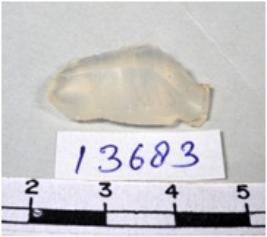 | Description / विवरण | A fragment of a rectangular shaped chalcedony blade showing dorsal sides with sharp cutting edges having smooth surface and uneven section. |