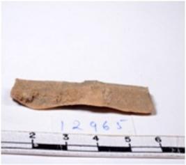 | Description / विवरण | A fragment of a rectangular shaped chert blade showing dorsal sides with sharp edges havnig smooth surface and triangular section. |