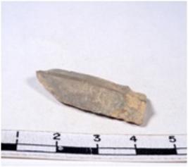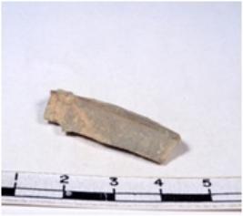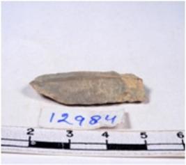 | Description / विवरण | A fragment of a rectangular shaped chert blade showing dorsal sides with sharp edges having smooth surface and triangular section. |