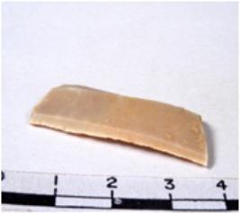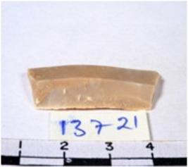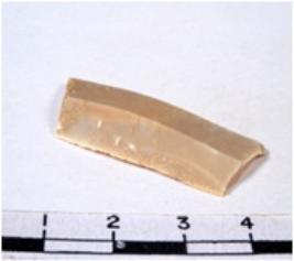 | Description / विवरण | A fragment of a rectangular shaped chert blade showing dorsal sides with sharp cutting edges having smooth surface and triangular section. |