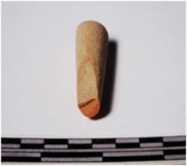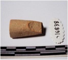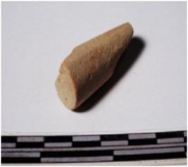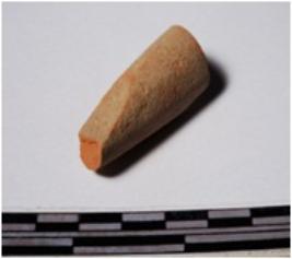 | Description / विवरण | A fragment of a terracotta cone, broken pointed end, circular in section of smooth surface. |