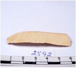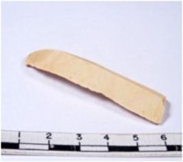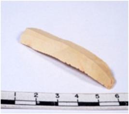 | Description / विवरण | A fragment of a rectangular shaped chert blade showing dorsal sides with sharp edges having smooth surface and triangular section. |